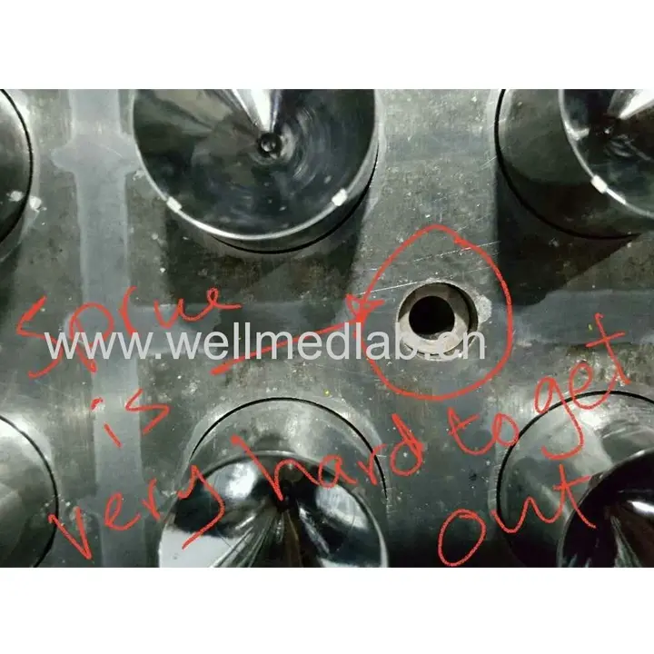 Reason: because PVC easy cause to mold rust, which is caused to this question. so When we restart to use molds after a long time. We must check if there are rust in Sprue.