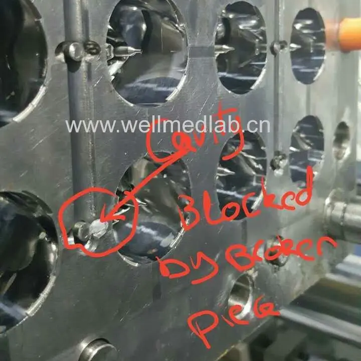 Question: pin doesn’t get out raw material tree during injection.
