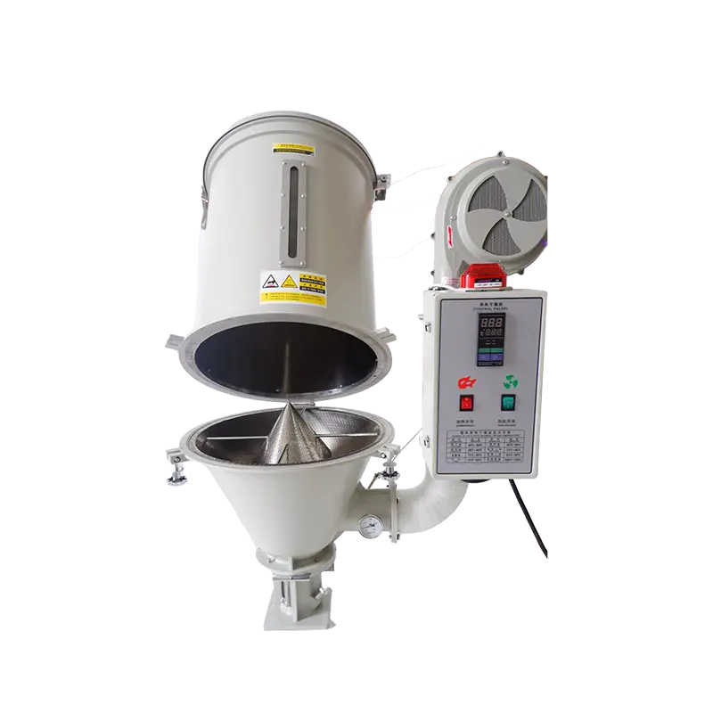 Well-distributed Heated Wind The heat efficiency is high enough to great amount of drying time. Precise temperature controls the precise temperature controls ensure and keep a high accuracy of temperature. Save time and manpower as the hopper body and bottom are designed separately, and therefore it is very convenient to clean materials and quite simple and quick to renew materials as well. The trustworthy design fine exterior, solid construction, short material-melting time greatly helps to promote the spouting speed.