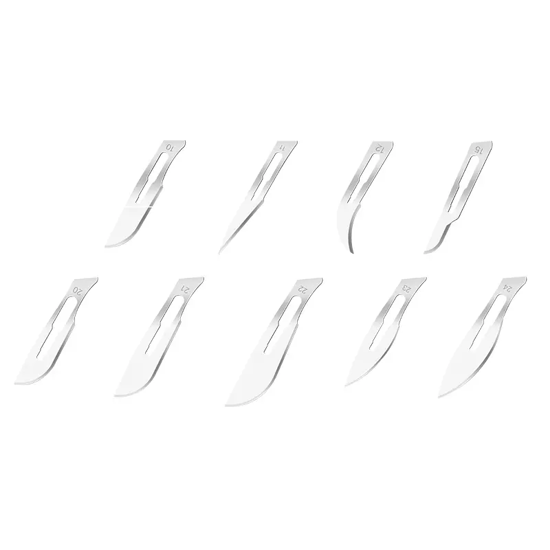 A surgical blade, also known as a scalpel, is a sharp, handheld instrument used by medical professionals during surgical procedures. It typically consists of a handle and a thin, replaceable blade made of high-quality stainless steel.Surgical blades come in various sizes and shapes, each designed for specific purposes. The most common types of surgical blades include the #10, #11, and #15, with the #15 blade being the most commonly used. Each blade has a unique shape and edge configuration, allowing for precise incisions in different parts of the body.Before each procedure, the blade is usually attached to a handle using a blade handle, which provides a secure grip and control for the surgeon. The blade can be easily replaced after use to maintain sharpness and reduce the risk of infection.Surgical blades are highly sterile and disposable to prevent cross-contamination between patients. They play a crucial role in achieving accurate and clean incisions, making them essential tools in the field of surgery.